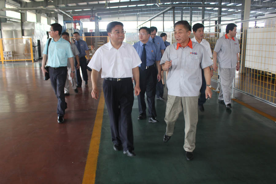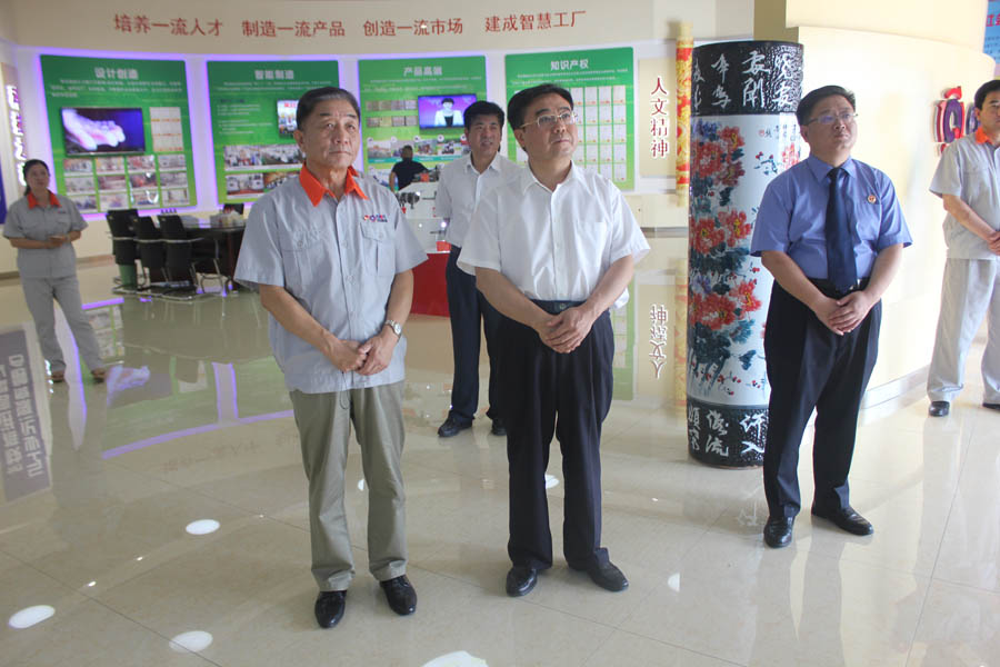 2017年7月4日,青島市人民檢察院黨組書記、檢察長李建新來公司考察,現場參觀了科技文化館、智能化生產車間和信息化系統管理平臺。平度市委常委、政法委書記于乃江,平度市檢察院檢察長董宏耀陪同考察。