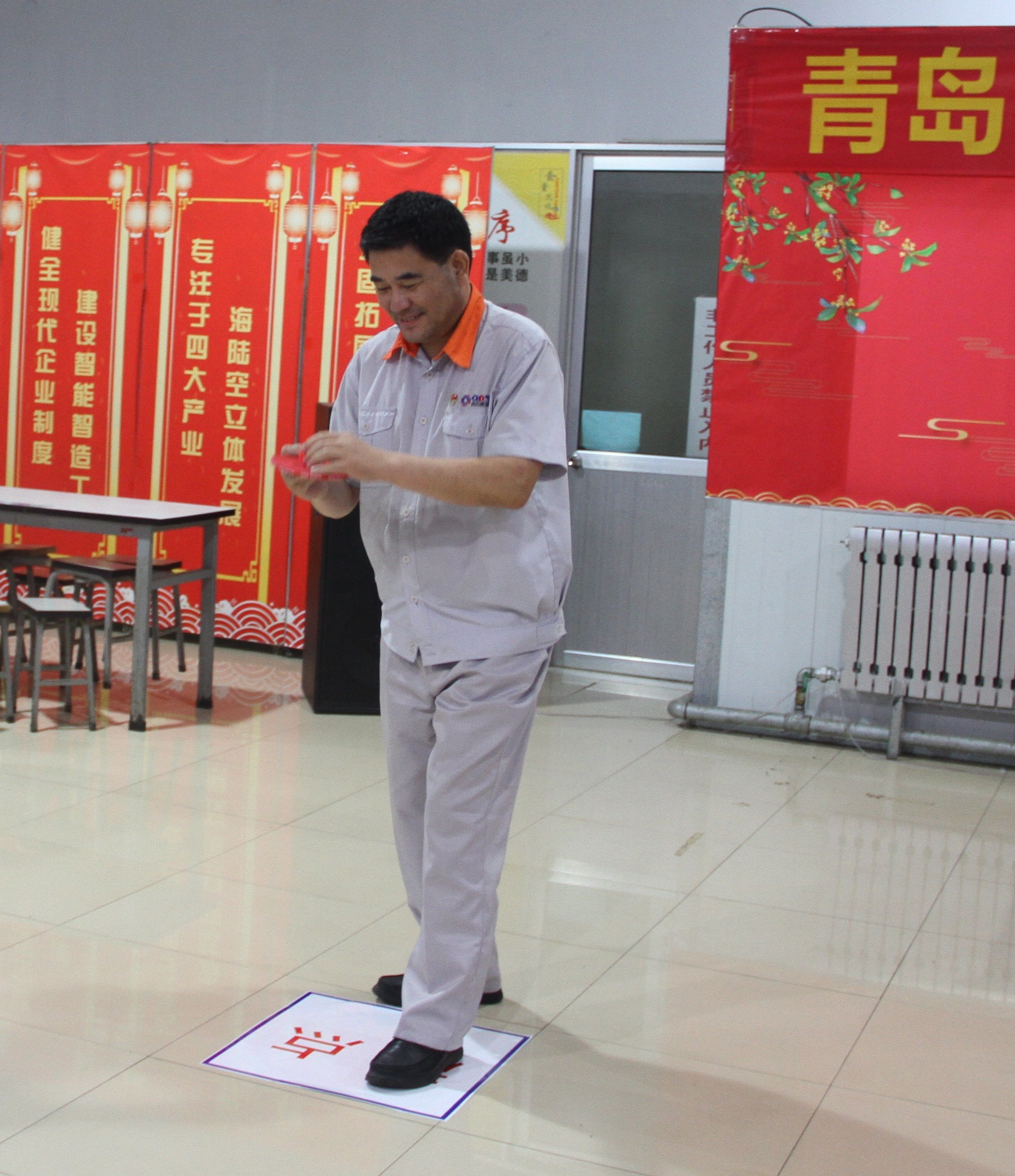 董事長為游戲中獲獎員工頒發獎品